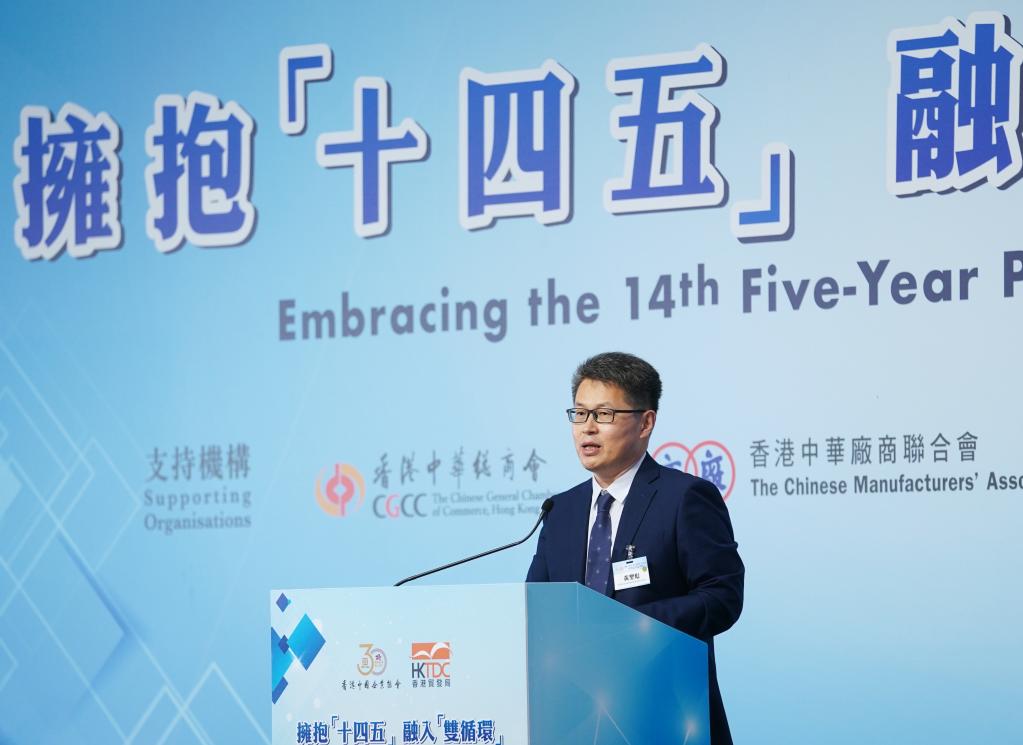 作為國家“十四五”規劃宣講團在港系列宣講活動的重要組成部分,“擁抱‘十四五’ 融入‘雙循環’”高峰論壇24日在香港會展中心舉行,由香港中國企業協會和香港貿發局主辦。來自香港工商界、學術界、外國商會和外資企業代表,以及中企協會會員代表等300余人與會。林建岳出席論壇開幕式時發表上述致辭。