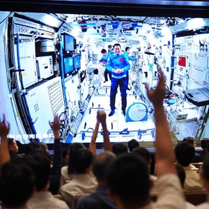9月3日下午,“時代精神耀香江”之仰望星空話天宮活動在北京和香港兩地成功舉辦。正在空間站執行任務的神舟十二號乘組與近300名香港科技工作者、教師和大中學生開展了一場實時天地連線互動。