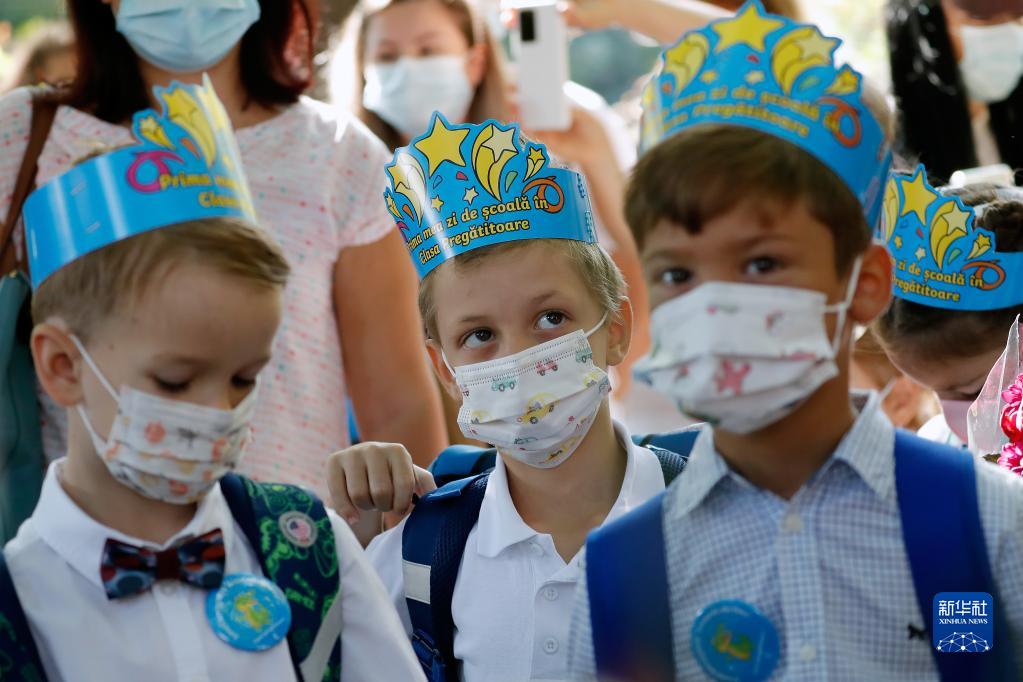9月13日,在羅馬尼亞首都布加勒斯特,學生等待新學期開學典禮。當日,羅馬尼亞全國中小學開學,由于疫情日趨嚴重,政府要求所有人員必須戴口罩。