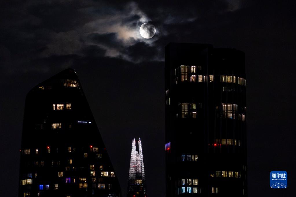 9月21日,滿月在英國倫敦的“碎片大廈”上空升起。