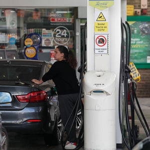 9月27日,車輛在英國倫敦一家加油站外排隊加油。