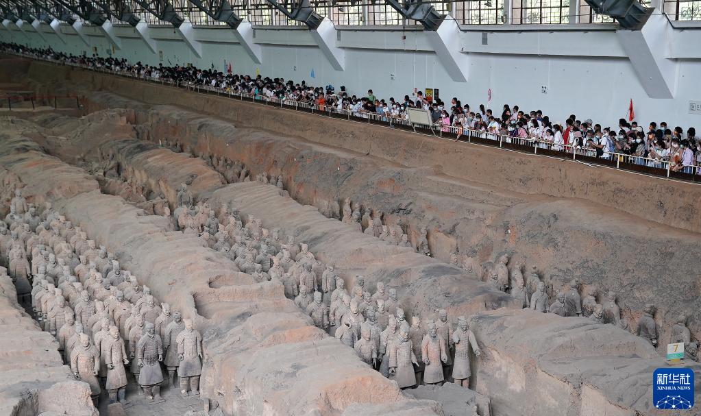 10月2日,游客在陜西西安秦始皇兵馬俑博物館參觀。