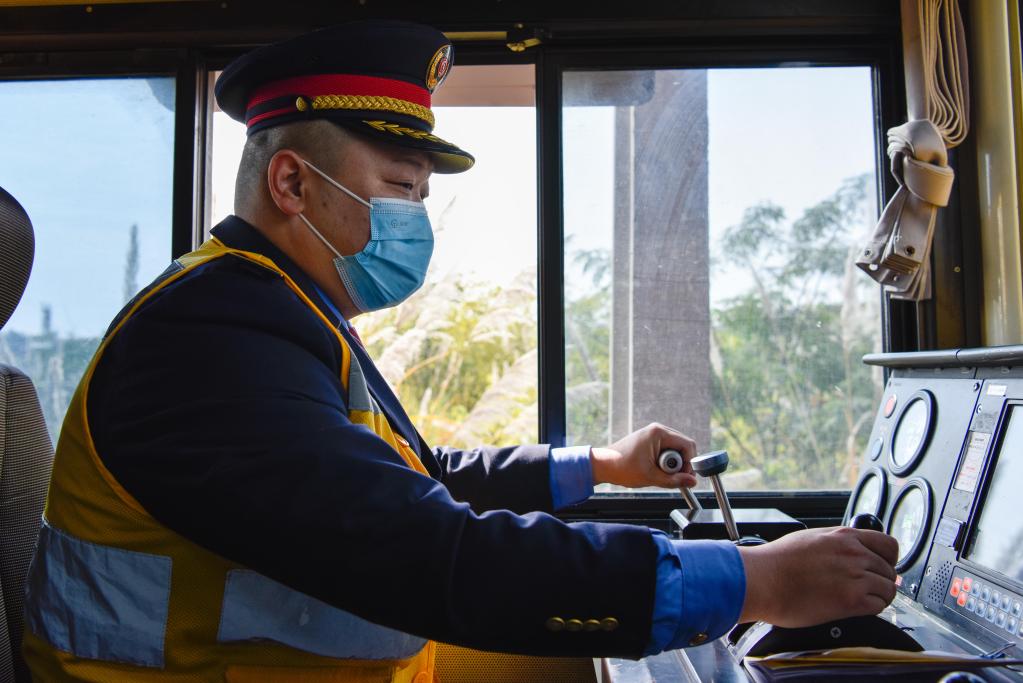 11月23日,韋瑋在成都北車站城廂站進行調車作業。新華社記者胥冰潔攝