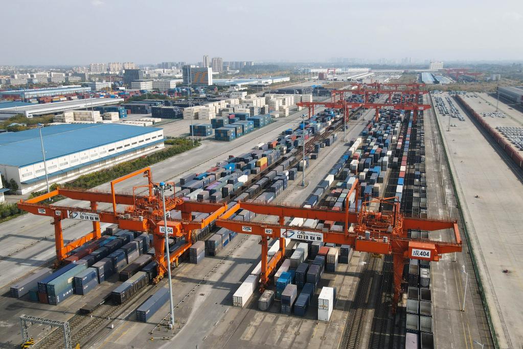 這是11月23日拍攝的四川省成都市青白江區的成都國際鐵路港(無人機照片)。新華社記者胥冰潔攝