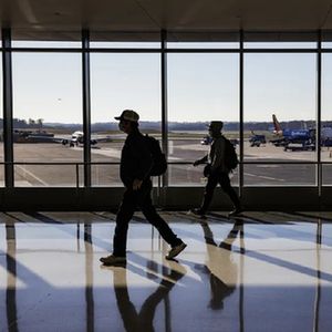 美國馬里蘭州巴爾的摩,民眾乘坐飛機出行。(資料圖)
