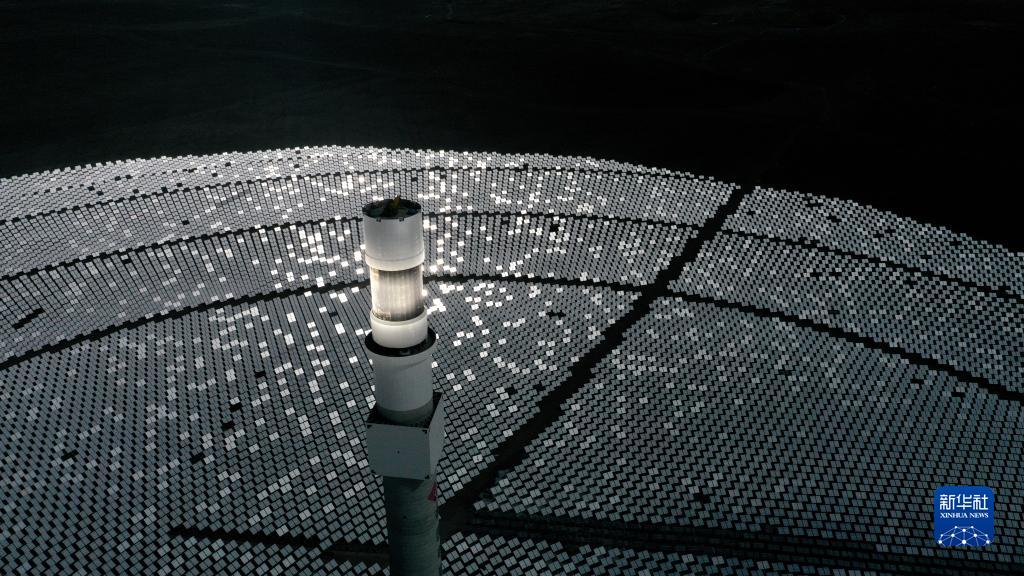 這是位于青海省海南藏族自治州共和縣光伏產業園內一處塔式光熱發電項目(3月3日攝,無人機照片)。新華社記者 張宏祥 攝