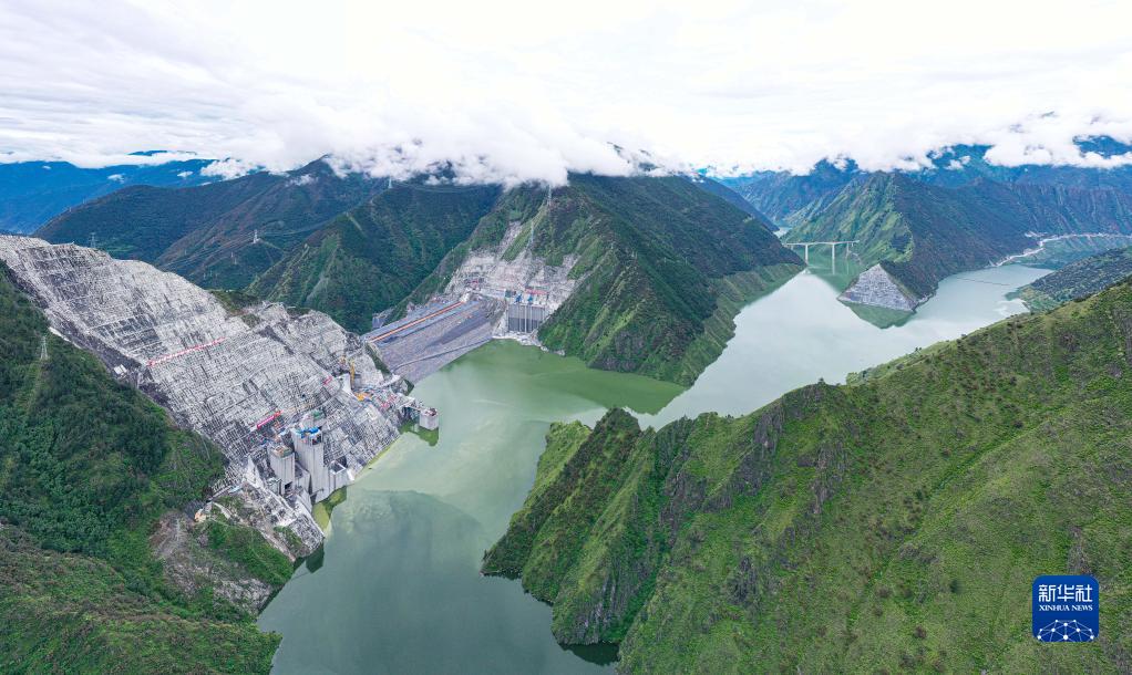 這是雅礱江兩河口水電站一角,兩河口水電站是國家和四川省重點工程、西部大開發優化能源供給側結構性調整的戰略工程(7月15日攝,無人機照片)。新華社發