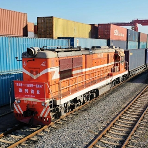 “連云港—二連浩特—莫斯科”中歐班列在江蘇連云港中哈物流基地整裝待發(11月23日攝,無人機照片)。新華社發(王健民 攝)