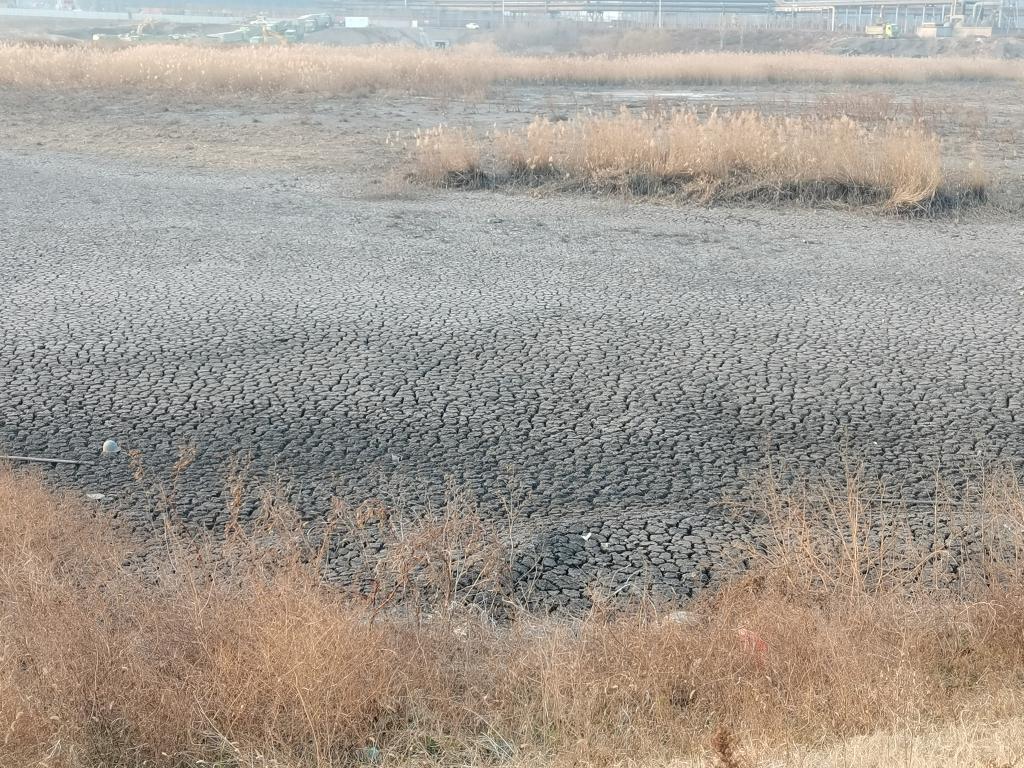 大片干結龜裂的污泥。 新華社記者 宋佳攝