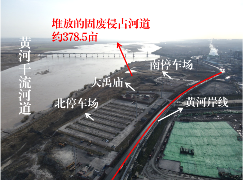 2021年11月3日,督察組暗查發現,2013年以來大量固體廢物堆積在黃河韓城龍門段干流河道內。 督察報告用圖
