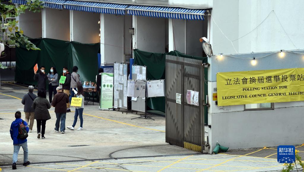 12月19日,在位于荃灣天主教石鐘山紀念小學投票站,選民陸續進入站內準備投票。新華社記者 盧炳輝 攝