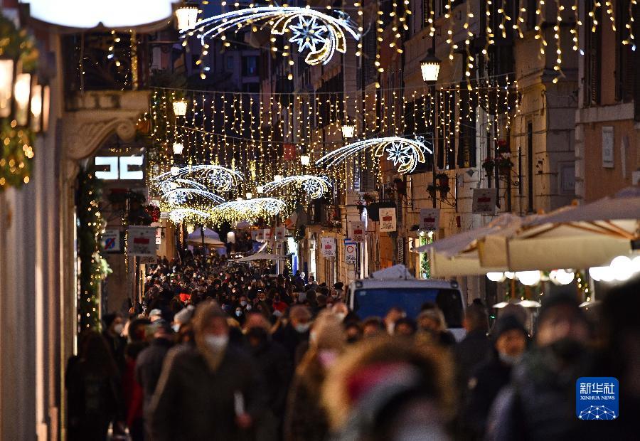 12月11日,意大利羅馬一處街道被節日彩燈裝點。圣誕節將至,意大利首都羅馬被圣誕樹和彩燈裝點,節日氣氛濃郁。 新華社記者金馬夢妮攝