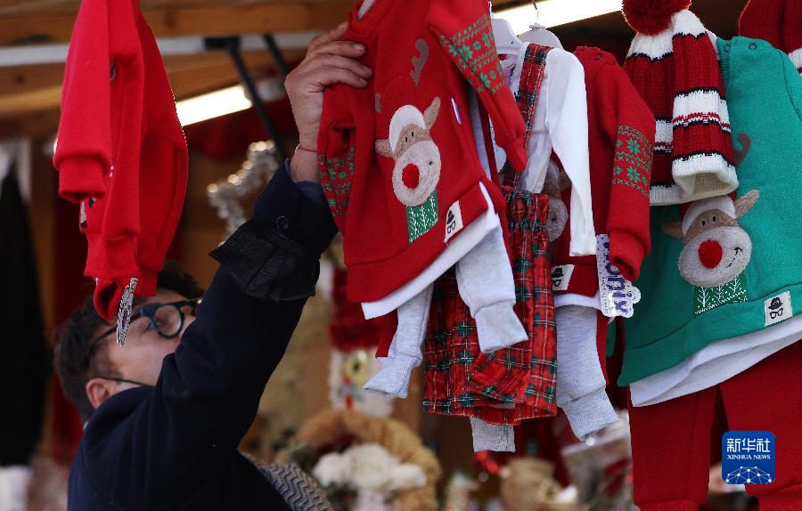 12月9日,一名男子在法國巴黎的一處圣誕市場挑選節日商品。 新華社記者 高靜 攝