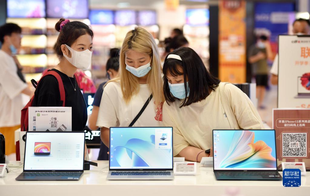 顧客在??谌赵聫V場免稅店購物(7月2日攝)。新華社記者 郭程 攝