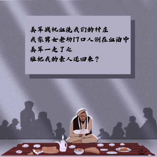 2021年8月29日,美軍撤離阿富汗前一天,美軍一次無人機空襲當場炸死他家10口人,包括7名兒童。記者曾于同年9月兩度采訪這個不幸的家庭。逃過一劫卻永失親人的幸存者一臉悲哀和憤怒,痛斥美軍犯下的“戰爭罪行”,要求美國政府對兇手繩之以法。