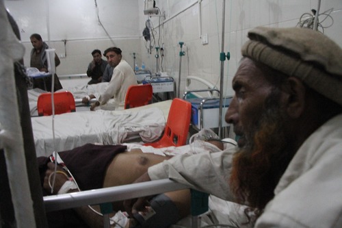 2019年9月19日,空襲中受傷的平民在阿富汗楠格哈爾省的一所醫院接受治療。阿富汗警方說,北約駐阿聯軍前一天在楠格哈爾省發動無人機空襲,造成18名平民死亡。新華社發(賽義夫拉赫曼·薩菲攝)