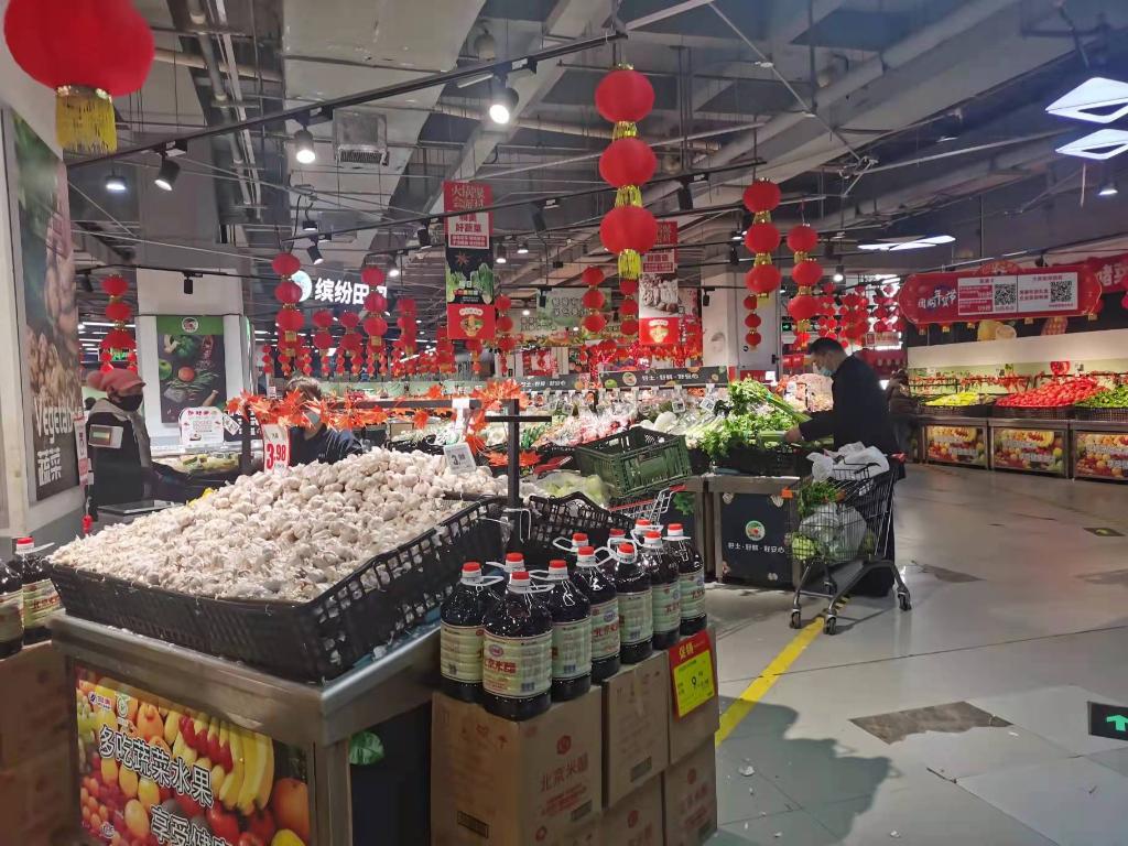 為了保障物資的充足供應,天津市區兩級商務部門第一時間啟動了市場保供應急預案,組織物美、華潤、人人樂、世紀華聯等40余家超市、菜市場為封控小區進行點對點配貨供應,確保封控社區生活必需品供應穩定。天津物美發展部負責人董偉說,當前米面、糧油、蛋奶等基本生活必需品在超市內均供應充足,一些蔬菜正在通過北京和天津的配送中心緊急調貨。