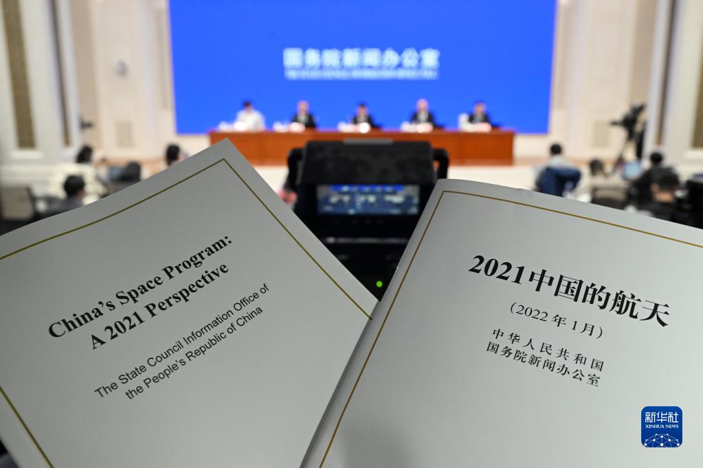 這是1月28日拍攝的《2021中國的航天》白皮書。當日,國務院新聞辦公室發布《2021中國的航天》白皮書,并在北京舉行新聞發布會?!⌒氯A社記者 金良快 攝