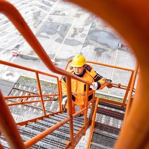 1月26日,鄭雨雙向16米高的龍門吊司機室攀爬。 新華社記者 唐奕 攝