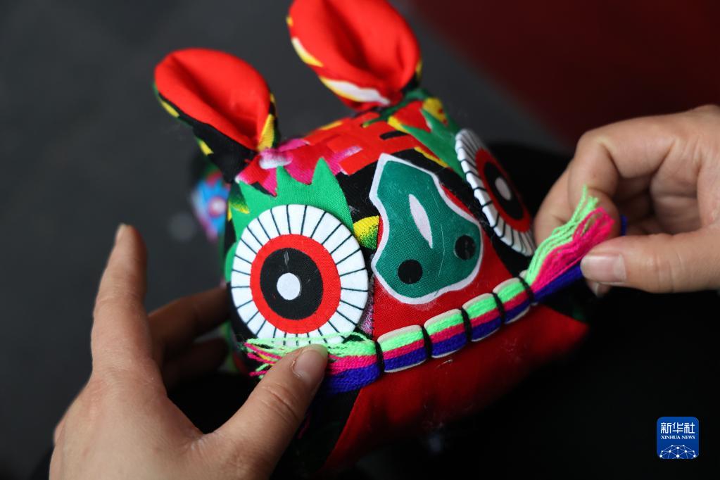 1月16日,在山東省濱州市濱城區彭李街道一家布老虎生產企業,手工藝人在制作布老虎。