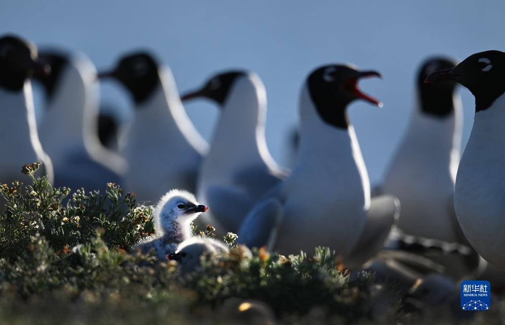 遺鷗在陜西省神木市紅堿淖濕地保護區的鳥島上繁殖的小遺鷗(2021年6月3日攝)。