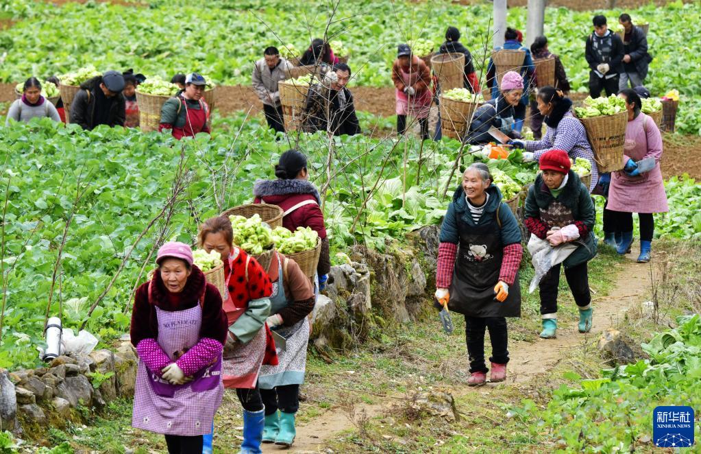2月11日,在重慶市酉陽土家族苗族自治縣后坪鄉前鋒村,村民收獲青菜頭。