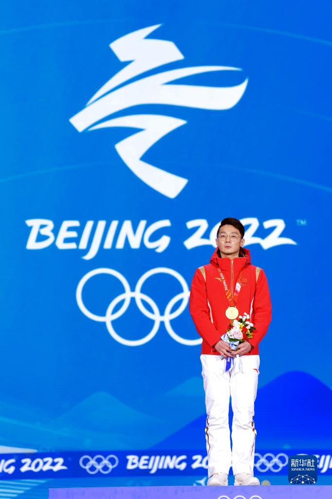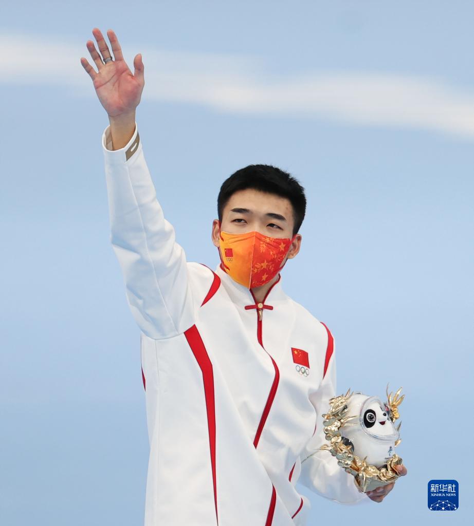 2月8日,短道速滑男子1000米比賽冠軍、中國選手任子威在獎牌頒發儀式上。新華社記者 鞠煥宗 攝