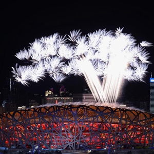 北京2022年冬奧會開幕式上的焰火表演(2月4日攝)。新華社記者 盧燁 攝