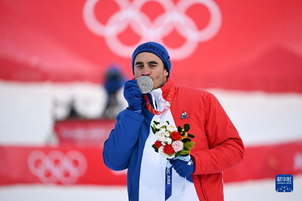 2月7日,高山滑雪男子滑降項目亞軍、法國選手約翰·克拉雷在獎牌頒發儀式上。新華社記者 陳斌 攝