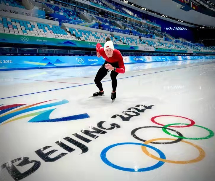 丹麥速度滑冰運動員維克多·索魯普在國家速滑館“冰絲帶”訓練時的留影。(圖片由維克多·索魯普提供)