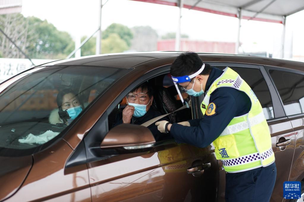 2月15日,車輛駕乘人員在京滬高速公路蘇州新區收費站接受查驗。新華社記者 季春鵬 攝