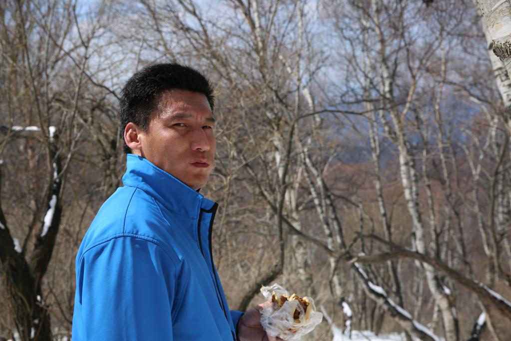 (圖為呂立鑫考察時在山間吃火燒)