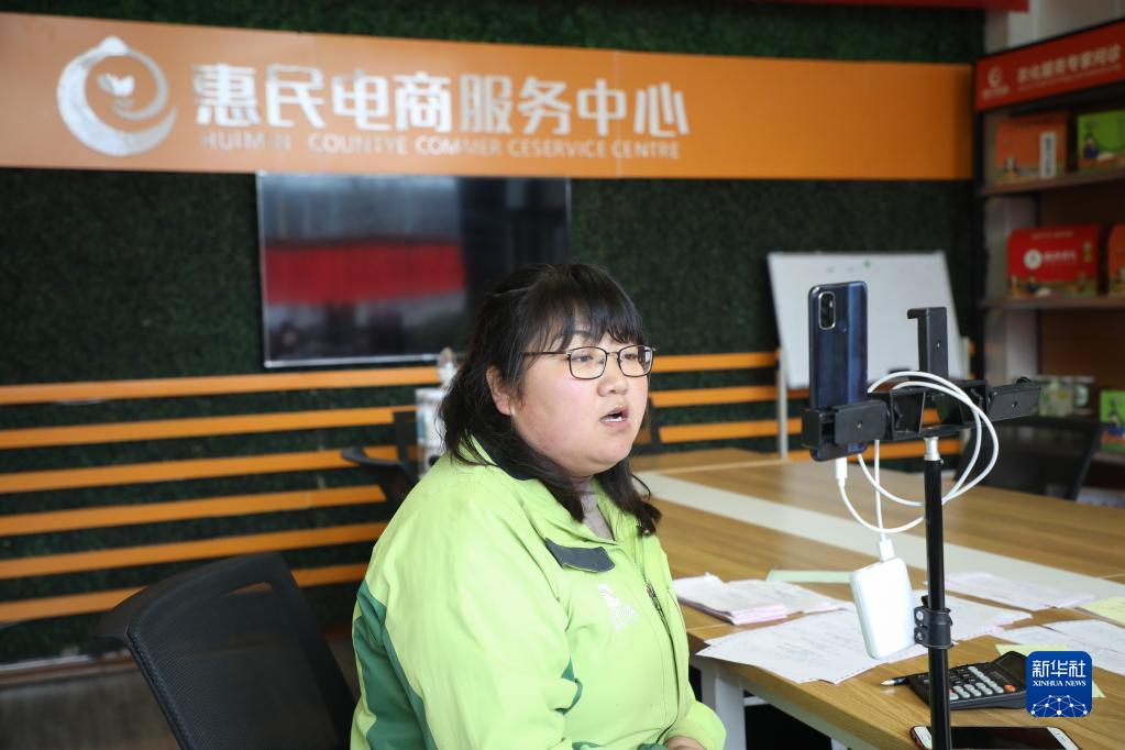 2月17日,在位于臨洮縣河口村的一家服務平臺入駐企業內,工作人員在線上直播講解農技知識。新華社記者 馬希平 攝