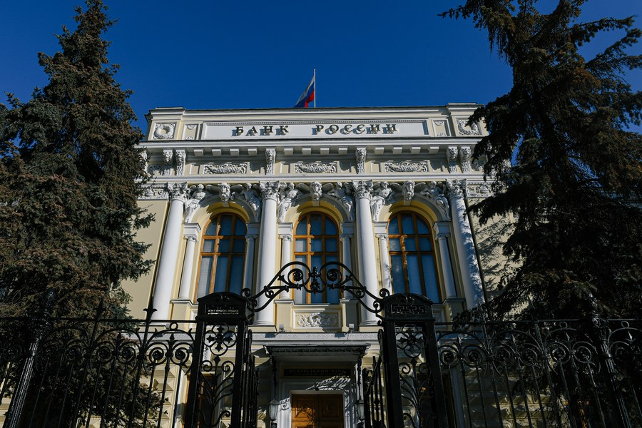 這是2022年2月25日在俄羅斯莫斯科拍攝的俄羅斯央行。新華社發(葉甫蓋尼·西尼岑攝)