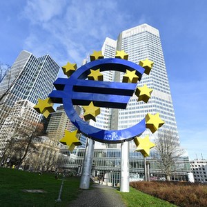 這是2021年12月30日在德國法蘭克福拍攝的歐元雕塑。新華社記者逯陽攝