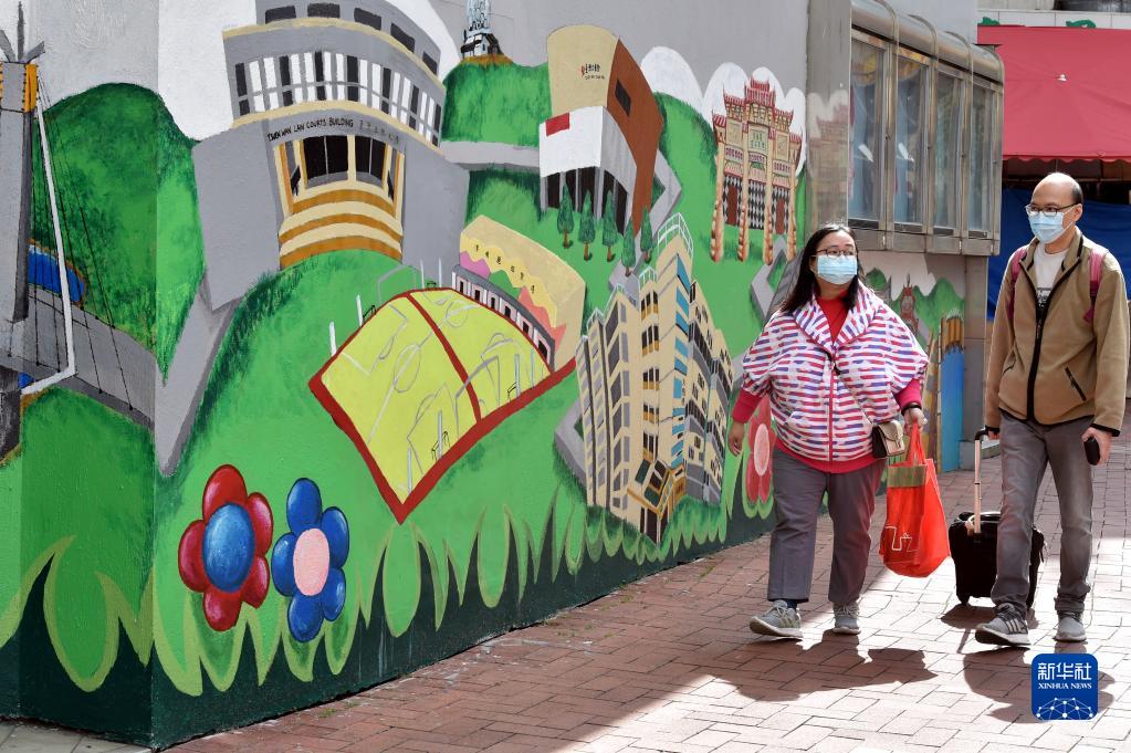 2月28日,在香港荃灣,市民佩戴口罩出行。新華社記者 盧炳輝 攝