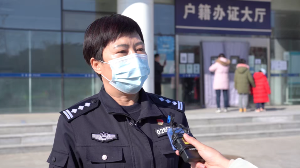 為姜女士辦理居住登記卡的北京市通州區焦王莊派出所民警郝建潔接受記者采訪。新華社記者 王普 攝