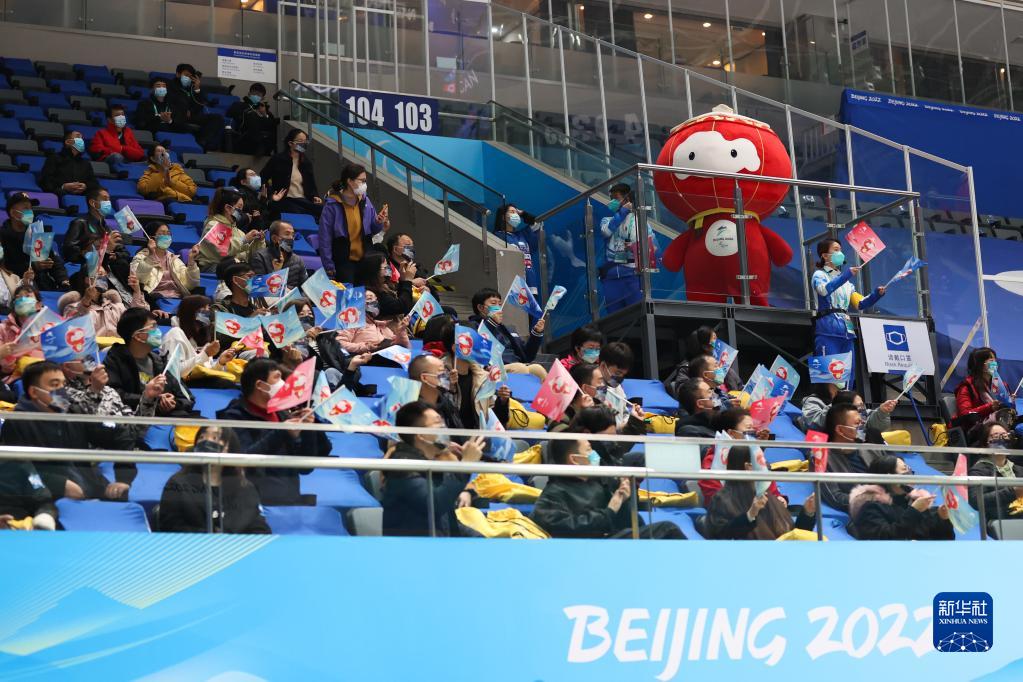 在北京國家體育館,“雪容融”在看臺觀看殘奧冰球半決賽(3月11日攝)。新華社記者 馬希平 攝