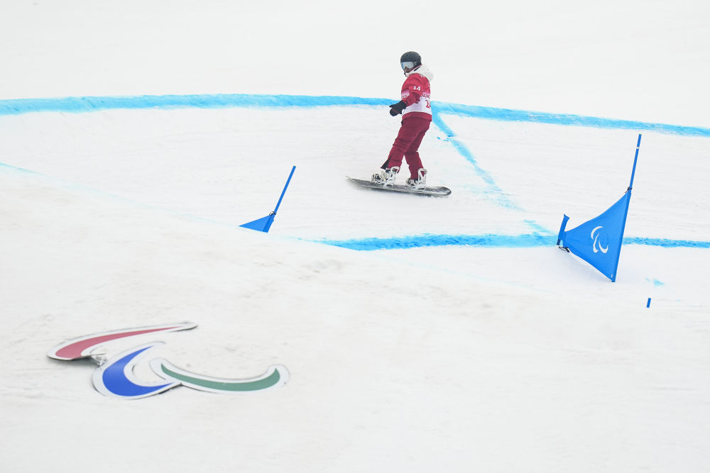 ↑3月11日,伊朗選手塞迪蓋·魯茲貝在張家口云頂滑雪公園舉行的殘奧單板滑雪女子坡面回轉LL2級比賽中。39歲的塞迪蓋·魯茲貝在比賽中不斷摔倒,再不斷站起,在跌跌撞撞中向終點前進,緩慢而倔強。540米長的坡面回轉賽道,她是全場用時最長的選手,與排名倒數第二位的選手相比慢了不止2分鐘。當她沖過終點時,迎接她的是熱烈的掌聲和歡呼聲。新華社記者 許暢 攝