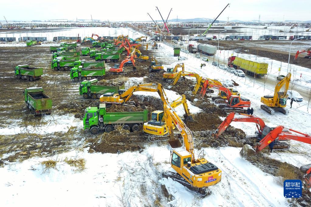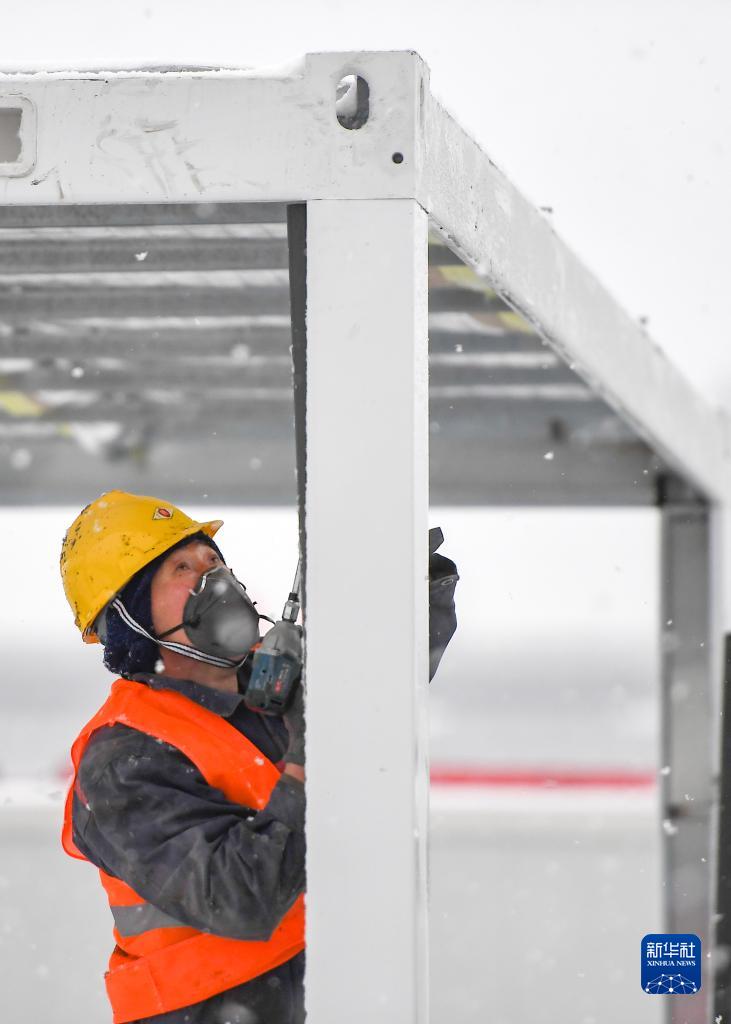 碩大的雪片紛紛揚揚灑落,位于吉林市高新區的隔離方艙施工現場泥濘不堪。