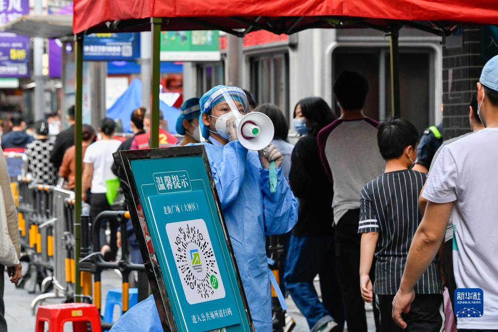 3月13日,志愿者在深圳羅湖區東門廣場核酸檢測點引導居民。新華社發(儲焱攝)