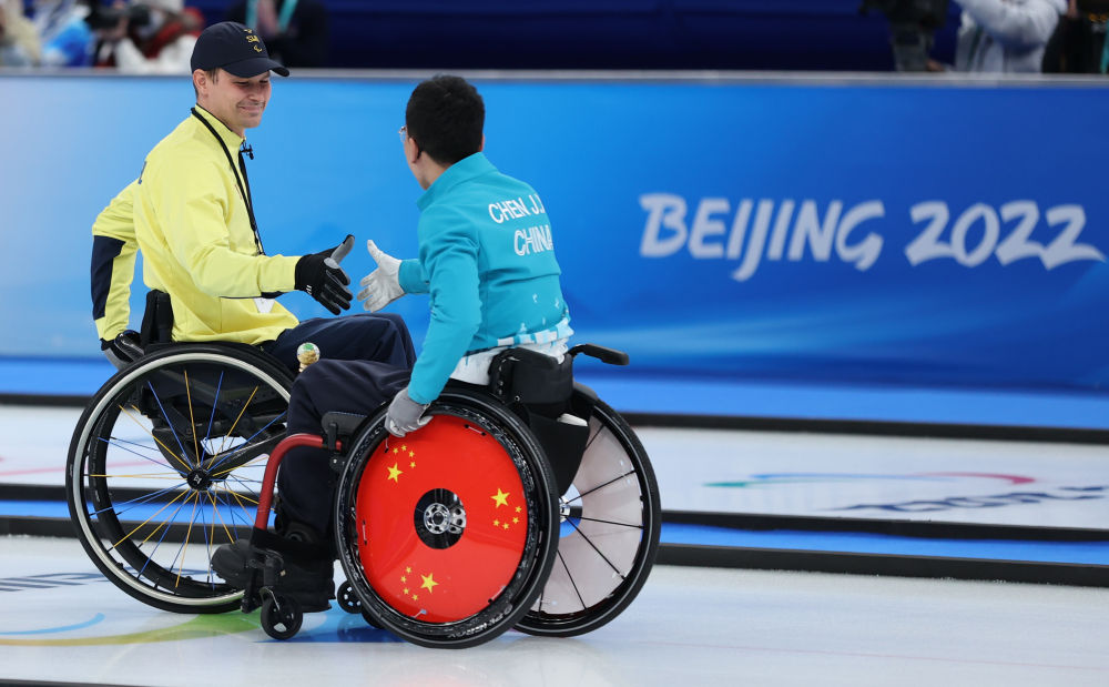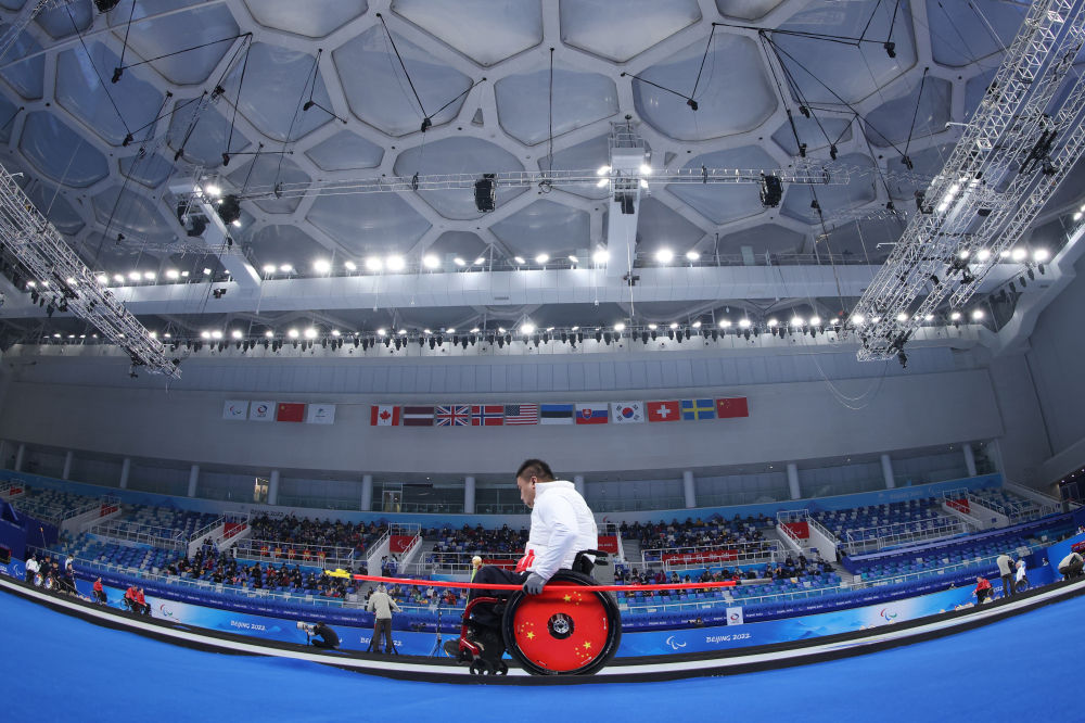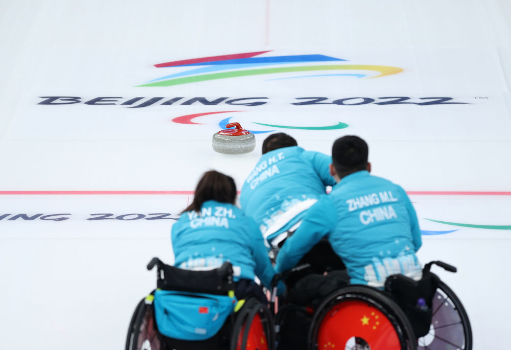 3月12日下午,2022北京冬殘奧會輪椅冰壺金牌賽在北京國家游泳中心“冰立方”進行。七局過后,中國隊以5分的優勢領先于老牌勁旅瑞典隊。