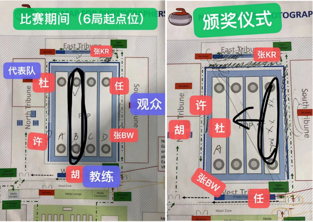 為此,作為輪椅冰壺項目負責人,我提前一天晚上向攝影經理詢問了頒獎儀式的拍攝安排和移動線路,在安排記者點位時,能保證各個點位記者拍攝奪金瞬間后能及時移動到拍攝頒獎儀式較好的點位。