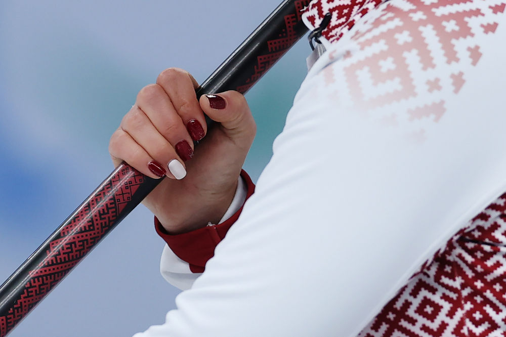 雙方隊長握手,這種禮節在冰壺比賽中有著特殊含義——瑞典隊選擇認輸。