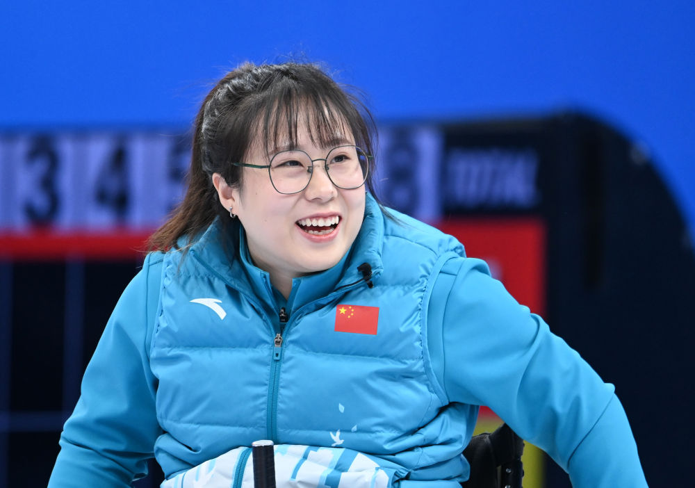↑3月12日,中國隊選手閆卓在輪椅冰壺金牌賽中。