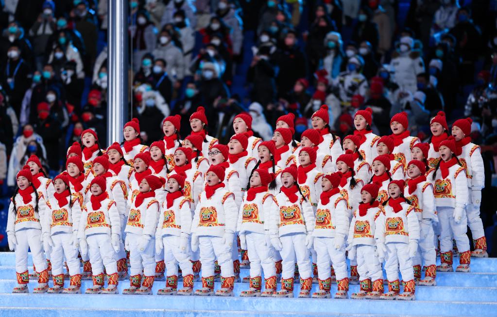 2月4日晚,第二十四屆冬季奧林匹克運動會開幕式在北京國家體育場舉行。這是“馬蘭花兒童合唱團”用希臘語在開幕式上歌唱。新華社記者 曹燦 攝