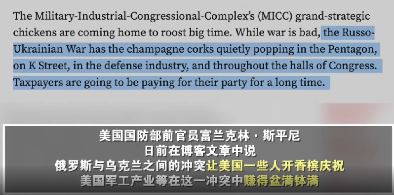 “俄烏沖突爆發以來,五角大樓(美國國防部)、K街(華盛頓游說公司聚集地)、軍工企業以及整個國會大廈內,都在悄悄地開香檳慶祝?!?/strong>曾在美國國防部長辦公室工作26年的富蘭克林·斯平尼如此點評。