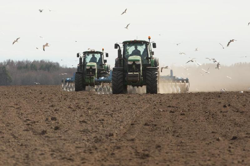 2021年4月15日,農民在俄羅斯列寧格勒州一農場內播種春小麥。新華社發(莫京娜攝)
