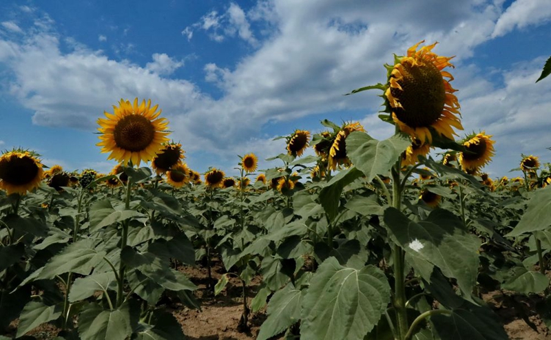 這是2019年7月9日在烏克蘭南部敖德薩州拍攝的盛開的葵花。烏克蘭盛產葵花,葵花籽油產量和出口量世界排名第一。新華社記者陳俊鋒攝