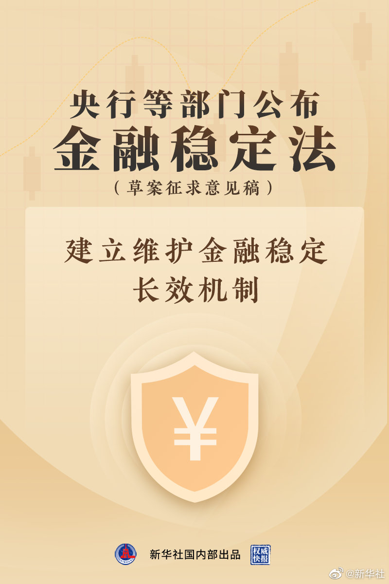 4月6日,中國人民銀行等部門公布金融穩定法(草案征求意見稿),明確國家金融穩定發展統籌協調機制(國務院金融委)職責,壓實各方金融風險防范化解和處置責任,強化金融風險防范和早期糾正,提出建立處置資金池,設立金融穩定保障基金,旨在建立健全高效權威、協調有力的金融穩定工作機制,進一步筑牢金融安全網,堅決守住不發生系統性風險的底線。(記者吳雨,海報設計楊軼群)